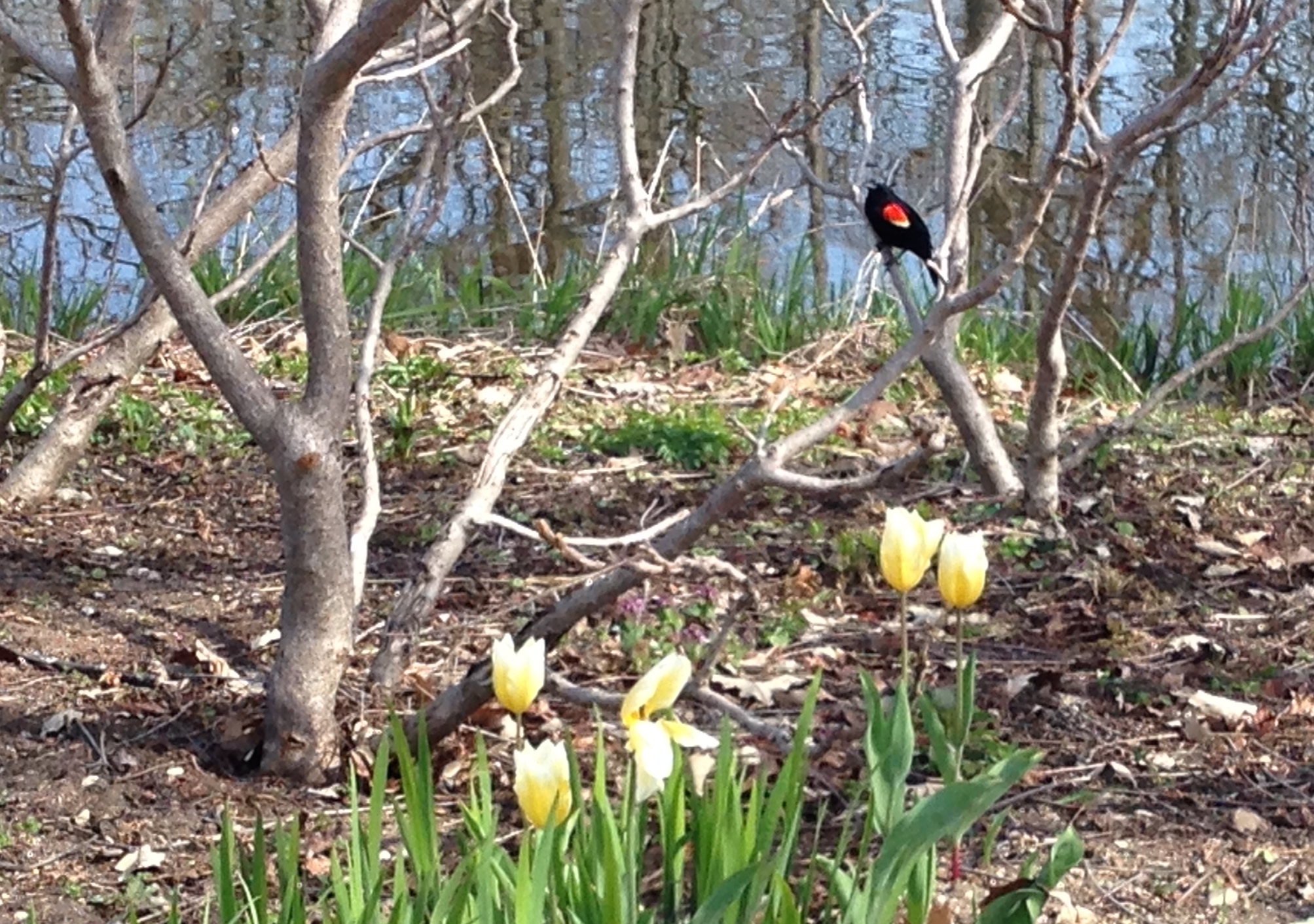 Another harbinger of spring is their lush planting of spring flowers, including the tulips by the reproduction windmills. And then there are all the birds, singing, courting, and building nests. If you travel through northern Indiana, do take the one mile detour off the Indiana tollroad to visit Wellfield Gardens and the Midwest Museum of American Art.